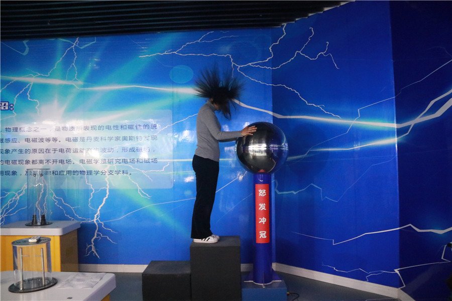 全体党员认真仔细地观看了科普小视频,在讲解员的引导下,有序参观了声光奥秘、电磁展区、力与机械、气象万千等展区,亲身体验了“怒发冲冠”“9DVR体验舱”等科技创新发明,身临其境感受了声、光、电、磁、力等方面的奇妙科学现象。
